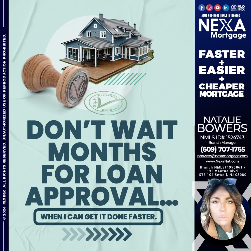 Hi, my name is Natalie Bowers. I’m a Loan Officer with NEXA Mortgage LLC., offering personalized mortgage solutions, fast customized quotes, great rates and service with integrity.