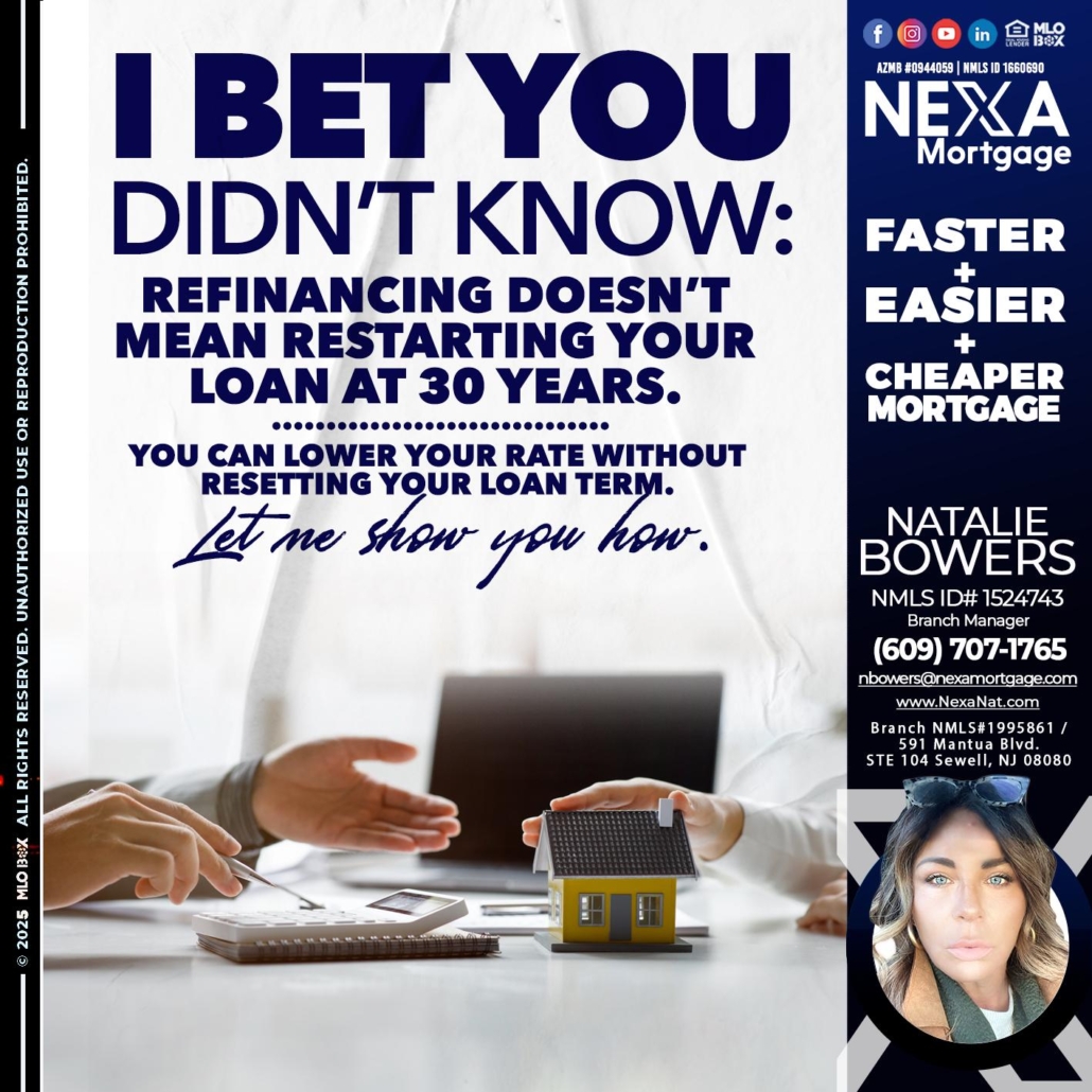 Hi, my name is Natalie Bowers. I’m a Loan Officer with NEXA Mortgage LLC., offering personalized mortgage solutions, fast customized quotes, great rates and service with integrity.
