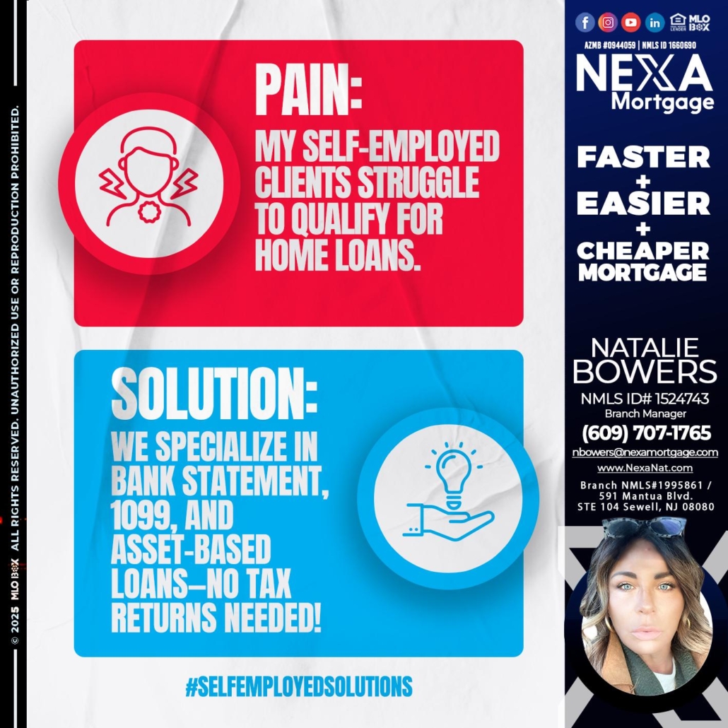 Hi, my name is Natalie Bowers. I’m a Loan Officer with NEXA Mortgage LLC., offering personalized mortgage solutions, fast customized quotes, great rates and service with integrity.