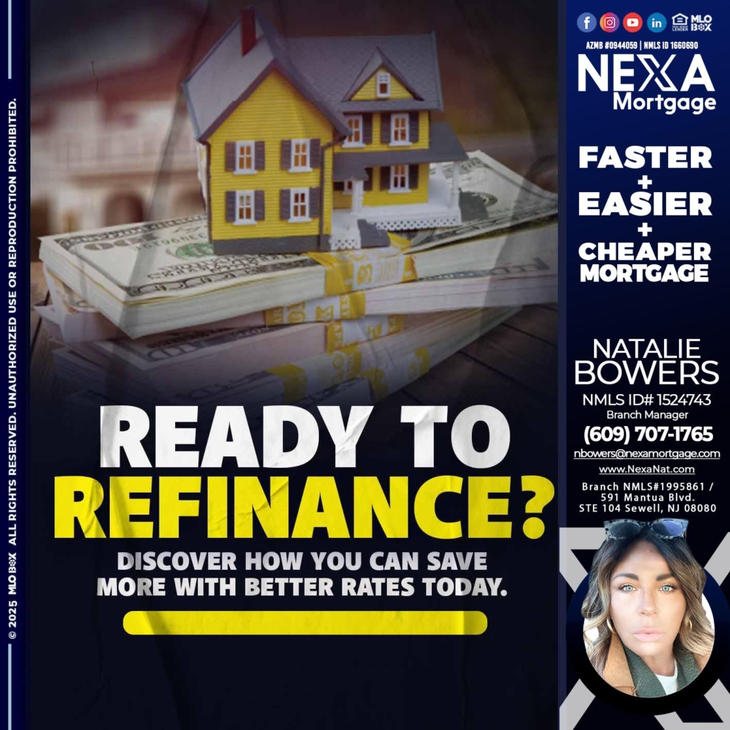 Hi, my name is Natalie Bowers. I’m a Loan Officer with NEXA Mortgage LLC., offering personalized mortgage solutions, fast customized quotes, great rates and service with integrity.