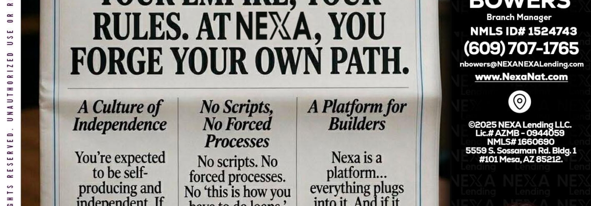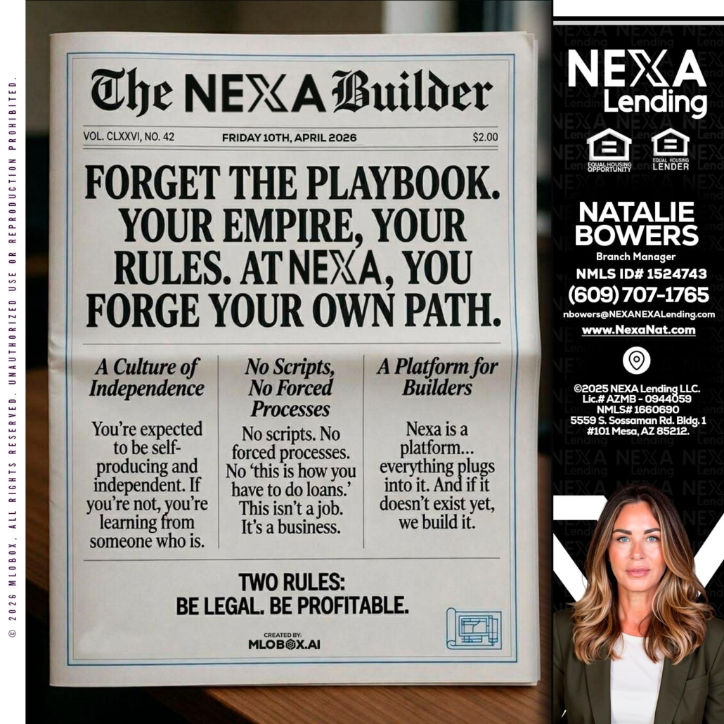 Hi, my name is Natalie Bowers. I’m a Loan Officer with NEXA Lending LLC., offering personalized mortgage solutions, fast customized quotes, great rates and service with integrity.