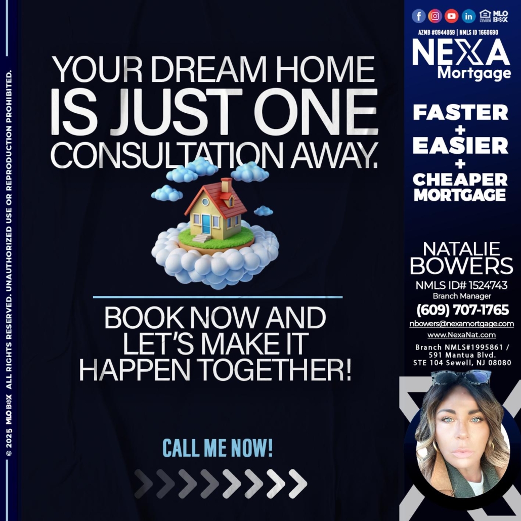 Hi, my name is Natalie Bowers. I’m a Loan Officer with NEXA Mortgage LLC., offering personalized mortgage solutions, fast customized quotes, great rates and service with integrity.